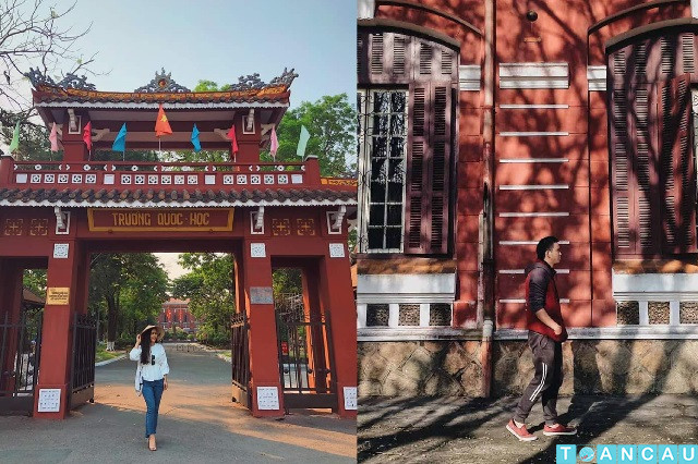 Cùng nằm trên đường Lê Lợi bên cạnh bờ sông Hương, trường Quốc học và trường Hai Bà Trưng là 2 ngôi trường cổ và nổi tiếng của thành phố. Đây không chỉ là 2 ngôi trường có lịch sử lâu đời mà còn là nơi đào tạo hàng đầu ở Huế và có một kiểu kiến trúc đầy ấn tượng. Tham quan 2 ngôi trường này và check-in chính là điều mà nhiều du khách không muốn bỏ lỡ khi ghé thăm thành phố Huế.