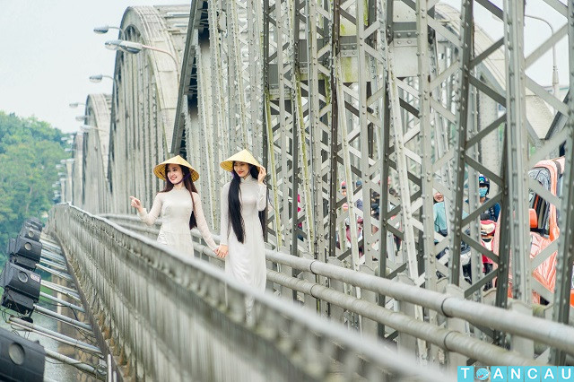 Khoác lên mình bộ áo dài và chụp hình trên cầu Trường Tiền là một trải nghiệm du lịch mà bạn nên thử khi tới Huế